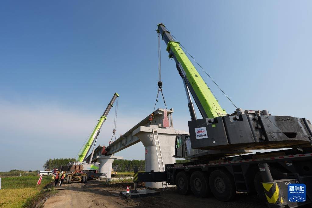 r9月5日,我国中欧班列“东通道”佳木斯至同江铁路扩能改造工程同江特大桥开始架梁施工。